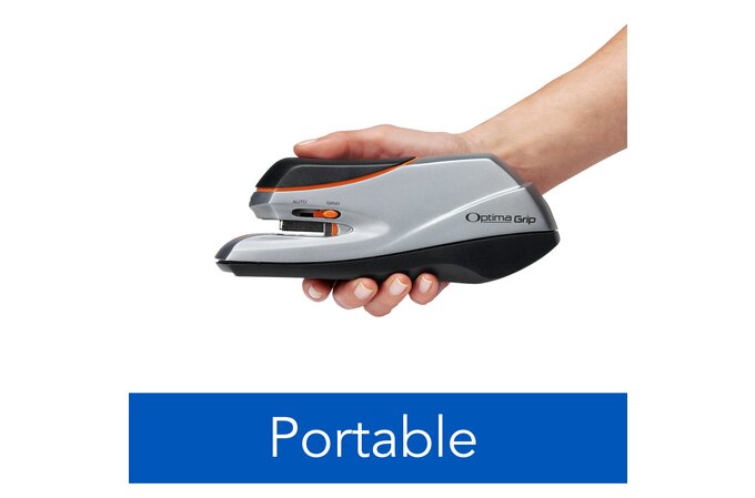 Intelligent Paper Alignment Guide and Stack Height Gauge guides staple placement and ensure you dont exceed the maximum sheet count. If you choose automatic the stapler will staple automatically when you insert papers into it. Just insert your paperwork into the Rexel Optima 40 Manual Stapler lightly squeeze the soft rubber grips on the handle and base and it will instantly staple your documents together using a unique mechanism that requires up to 50 less effort than a traditional stapler. Features a user control switch - choose automatic stapling or use the manual mode to activate the motor on your command. Perfect for business travel this stapler is compact enough for handheld use and offers a battery power option. The intuitive user control feature increases precision by allowing you to see and decide where every staple is placed.